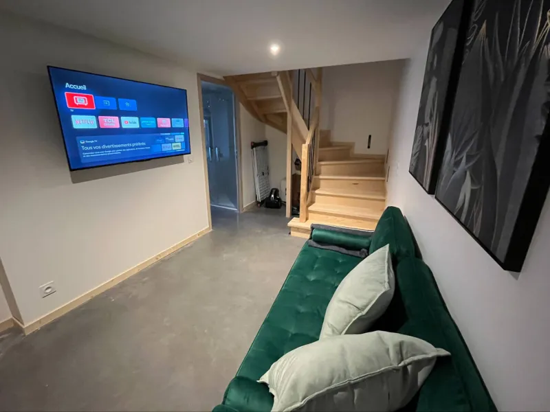 - Grandes baies vitrées, terrasses et jardin offrant une magnifique vue sur les volcans.- Équipement luxueux : 2 suites (incluant salle de bain et WC, …), un dortoir (incluant un lit 200x200...), un sauna extérieur, 4/5 places dominant les volcans.