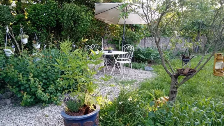 Le jardin clôturé, très vert et ombragé, vous offrira de merveilleux moments de détente avec son coin repas et ses transats.