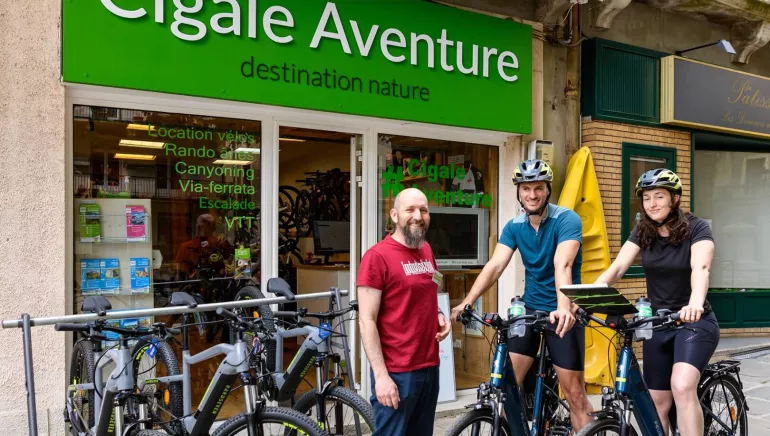 Pour louer vos vélos, la boutique Cigale Aventure vous accueille au centre ville du Vigan. Bienvenue !